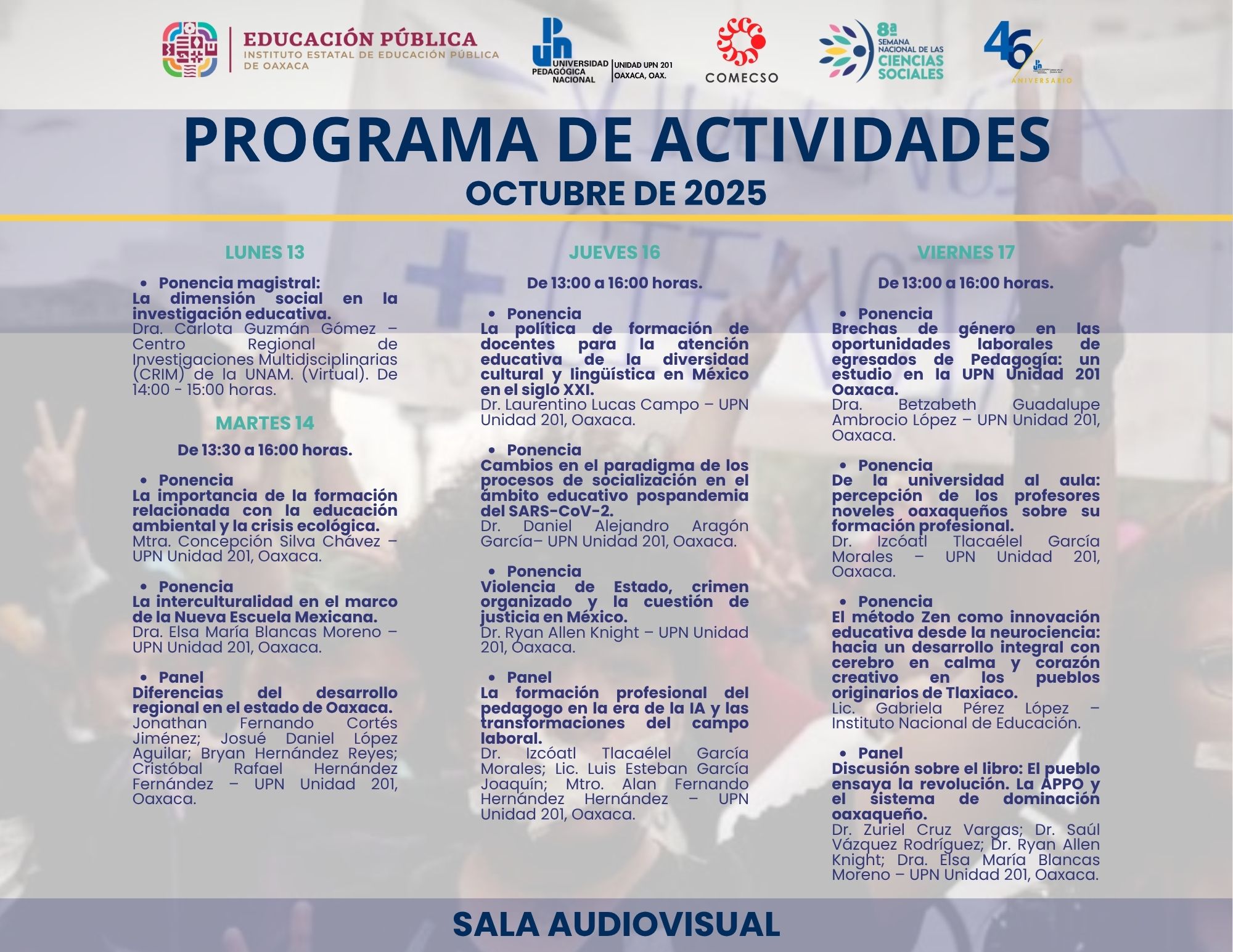 ¡Corre la voz! Reservación de Espacios Audiovisuales Solicitud de Asignación de Espacios Audiovisuales para Clases Regulares Servicio Social Instituciones Receptoras Servicio Social Reglamento Decreto de Creación de la UPN | "47 años educando y transformando"